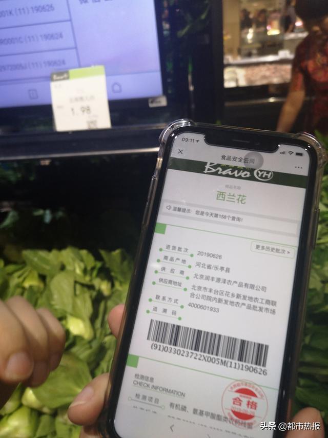 超市是城市家庭采購食品的主要渠道,其銷售的食品更是牽動著每一位消費者的心。第一站來到了重慶永輝超市有限公司江北區生活廣場分公司,公眾代表一行考察了蔬果區、蔬菜農殘檢測公示處、肉禽區、快檢室,了解以大型超市為代表的食品經營環節安全保障情況。在永輝超市,記者看到了標有“食品安全云網”字樣的顯示屏,據永輝超市食品安全相關負責人介紹,針對果蔬農產品,消費者可以通過關注“食品安全云網”公眾號輸入單品名稱,或是通過掃描單品上的二維碼進行查詢了解相關的產品信息,無論是從物流到源頭,檢測合格信息和追溯信息都可以查到。據了解,永輝超市食用農產品溯源二維碼查詢預計年底覆蓋所有門店。