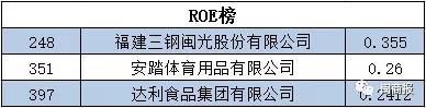三鋼閩光、安踏體育、達(dá)利食品上榜ROE榜。凈資產(chǎn)收益率代表著股東權(quán)益的收益水平,用以衡量公司運用自有資本的效率。ROE值越高,意味著股東的投資所創(chuàng)造的利潤越多。