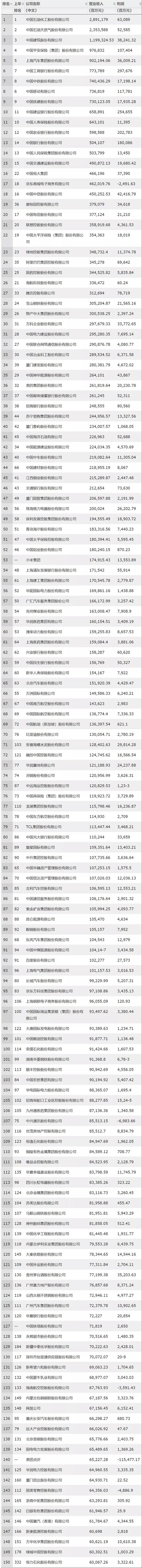 據(jù)了解,該榜單由《財富》(中文版)與中金公司財富管理部合作編制,考量了全球范圍內(nèi)中國上市企業(yè)在過去一年的業(yè)績和成就。營收方面,中國石化、中國石油和中國建筑位列前三甲。