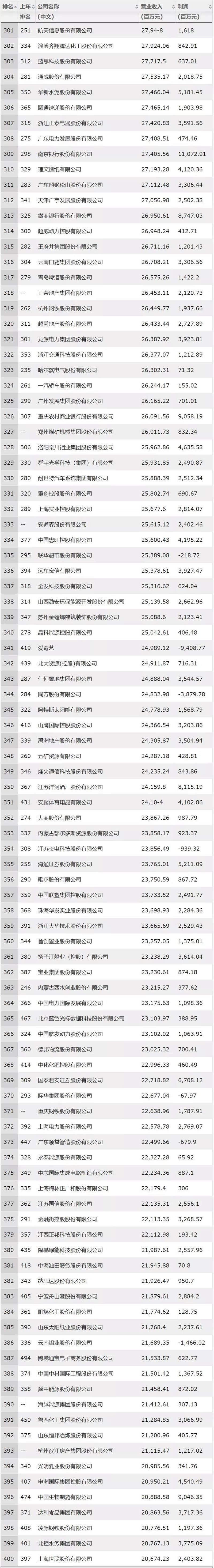 美團(tuán)、寧德時代、正榮地產(chǎn)首次上榜。今年共有42家新上榜和重新上榜的公司,美團(tuán)點評以652億元營收排名第140位;寧德時代以296億營收排名第290名;正榮地產(chǎn)以264億排名第318名。