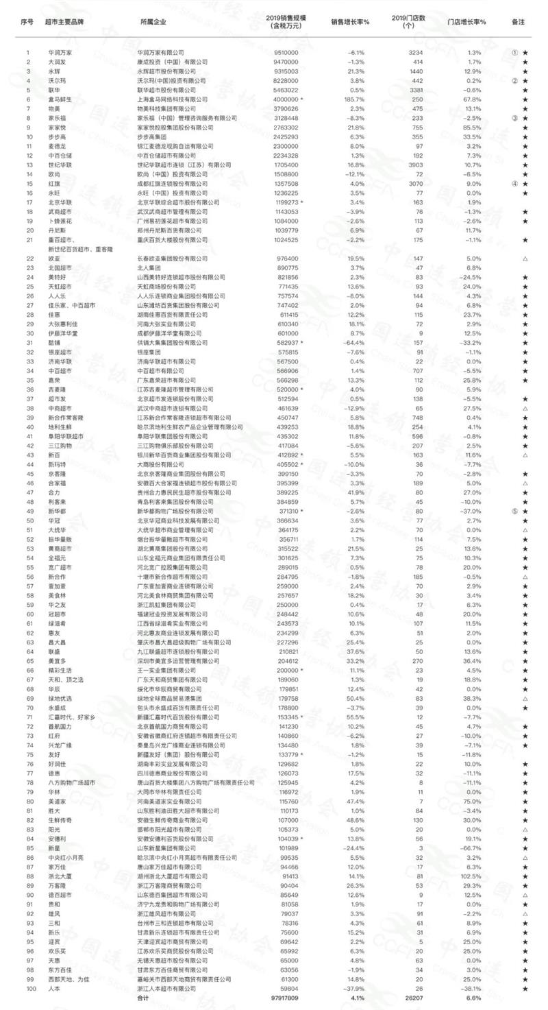2019年中國超市百強出爐:永輝超市位居第三