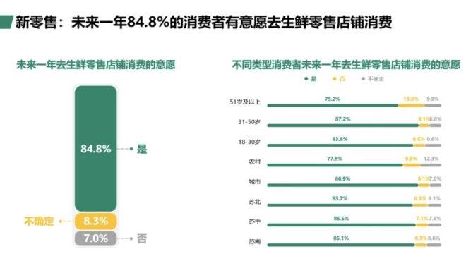 未來,江蘇人對消費有什么新期待?現代快報記者了解到,在生鮮新零售領域,有將近九成(84.8%)的消費者表示,希望到生鮮新零售店鋪消費。此外,希望增加生活類消費場所,包括連鎖/大型超市、百貨/購物中心,尤其是蘇中蘇北地區。