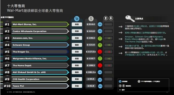 榜單前十強保持不變,沃爾瑪仍位居第一