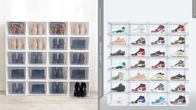 這些打著“高透”、“環(huán)視無(wú)障礙”的亞克力鞋盒,堆砌出直男們夢(mèng)寐以求的鞋墻——與傳統(tǒng)的收納心態(tài)不同,鞋墻要把每一雙鞋都展露出來(lái),用“規(guī)模化”效果滿足自己在收藏中獲得的快樂(lè)。