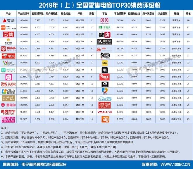 30家零售電商上消費評級榜 各類電商表現“參次不齊”