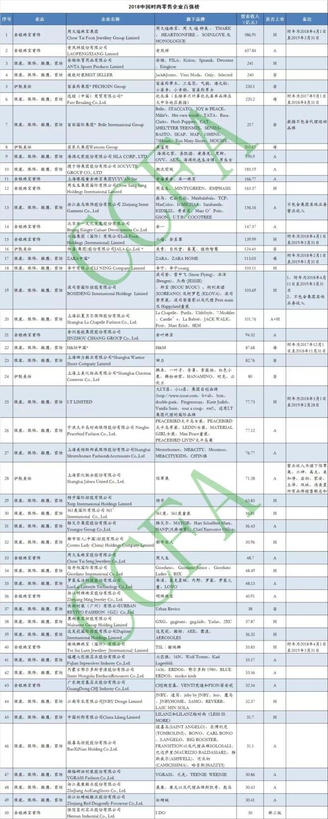 10月11日,中國連鎖經營協會首次發布了中國時尚零售企業百強榜。 ...
