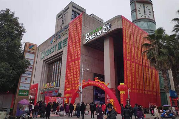 該店位于繁華的重慶市長壽區桃源大道8號凱誼?世紀廣場,周邊有學校、醫院、公園、辦公樓、數十個高檔住宅小區,人流量極高。它與該購物中心的百貨、影院、游樂場等多種業態相得益彰,成為都市白領、工薪階層采備家庭所需的不二選擇。