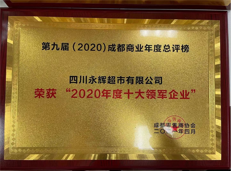 2021年4月14日,成都零售商協會舉行第九屆(2020)成都商業年度總評榜頒獎儀式。四川永輝超市有限公司榮獲 “2020年度十大領軍企業”稱號。