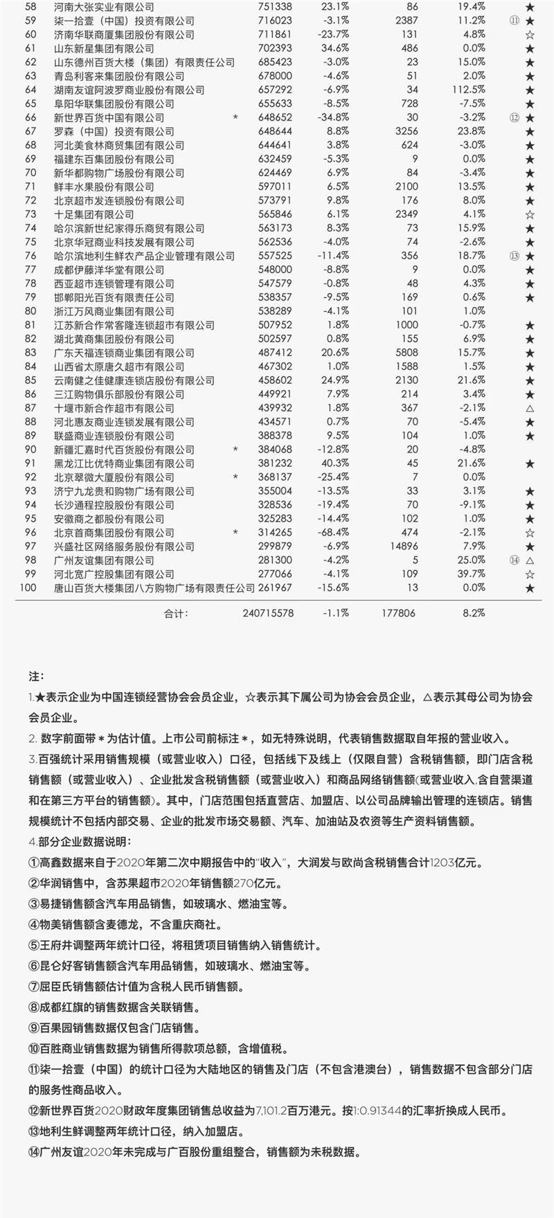 6月7日,根據(jù)“2020年行業(yè)基本情況及連鎖百強調(diào)查”結果,中國連鎖經(jīng)營協(xié)會發(fā)布“2020年中國連鎖百強”名單。榜單顯示,永輝超市2020年銷售10453915萬元,銷售增長率12.2%,位居榜單第四位,相較2019年上升2位。