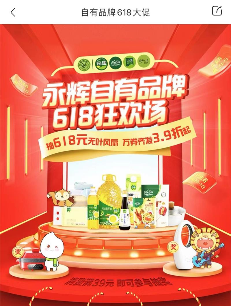 永輝自有品牌也齊獻禮,打造618狂歡場。消費滿39元可抽618元無葉風扇。此外,深挖生鮮供應鏈優勢,永輝生鮮自有品牌永輝農場板栗南瓜、秒開椰青、蜜瓜家族、小龍蝦量販裝等商品新鮮上市,合力為消費者獻上一場健康、高品質、差異化的購物盛宴。