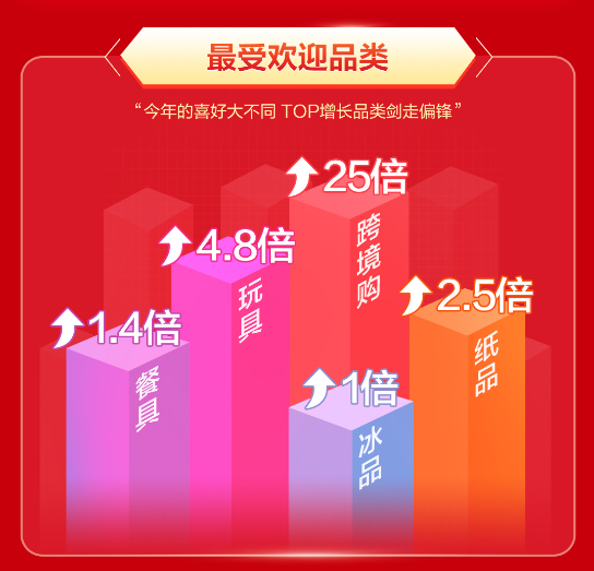 跨境購、玩具、紙品、餐具及冰品成為永輝618最受歡迎的品類,尤其是跨境購業(yè)務(wù),增長達(dá)25倍。
